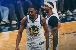 赛后勇士官方发布赢球海报,封面人物为梅尔顿和小佩顿。