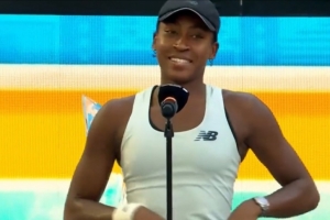 体育资讯3月29日讯 在1-2输给萨巴伦卡,无缘WTA1000迈阿密冠军后,高芙在颁奖典礼上发表了演讲。