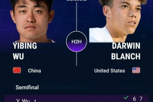 体育资讯4月12日讯 ATP挑战赛萨拉索塔站半决赛,头号种子吴易昺直落两盘击败布兰奇,晋级决赛。