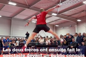 体育资讯4月17日讯 近日,法国乒乓球名将大勒布伦和小勒布伦举行了一场表演赛。