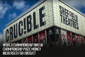 官方:2027斯诺克世锦赛冠军奖金62.5万镑!总奖金300万增长25%