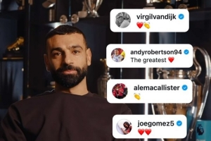 利物浦官方更新社媒动态,晒出队友们社媒留言致敬萨拉赫的合集。